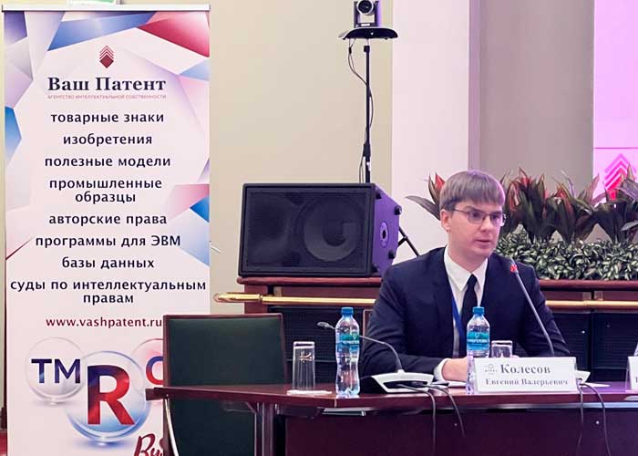 Евгений Колесов - старший юрист судебного департамента АИС «ВАШ ПАТЕНТ», патентный поверенный РФ, Евразийский патентный поверенный выступил перед собравшимися с докладом об изменении в законодательстве. А именно: о том, как с начала 2026 г. будут рассчитываться и взыскиваться компенсации за нарушение интеллектуальных прав.